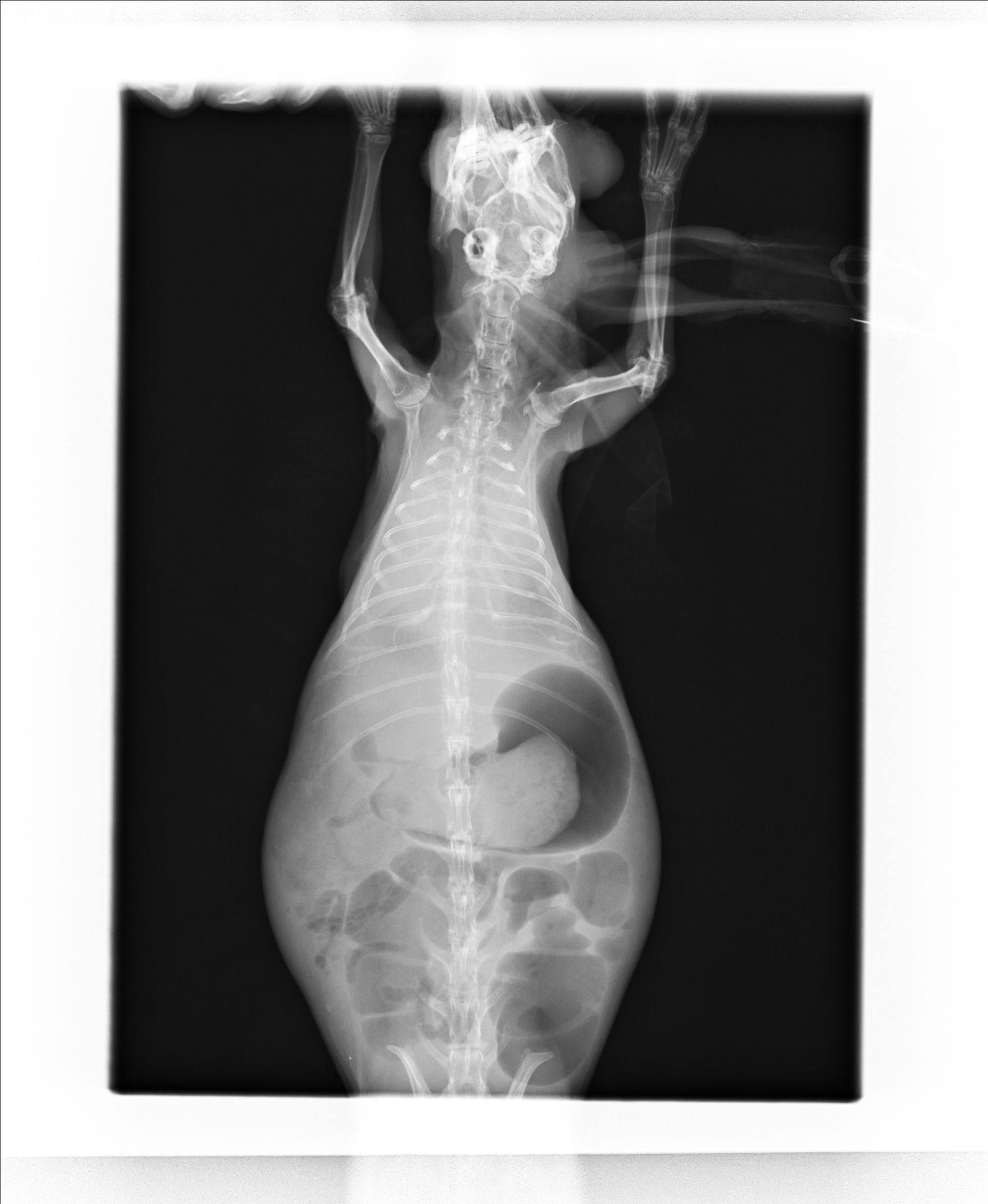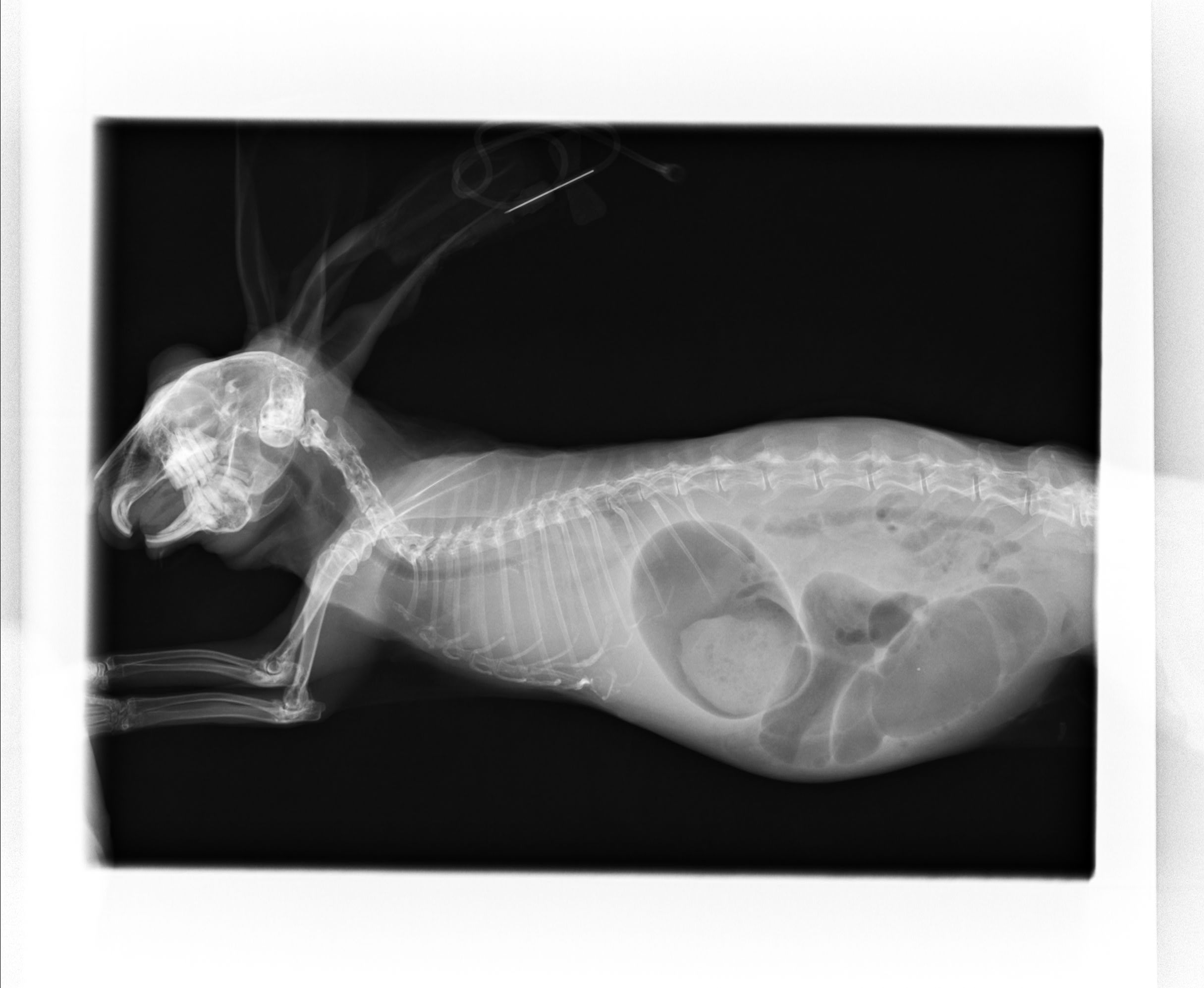 3日前から食欲ないとの主訴で来院。検査では腎臓が悪く、肺に腫瘤が認められたため、抗生物質、ステロイドによる治療を行いましたが治療の甲斐なく亡くなってしまいました。この子のヒストリーでは胸腺腫、子宮腺癌の肺転移、肺膿瘍などが考えられましたが、呼吸状態と腎臓も悪く生前に積極的な検査を行うことができませんでしたが、肺の細胞診で肺膿瘍が疑われました。