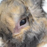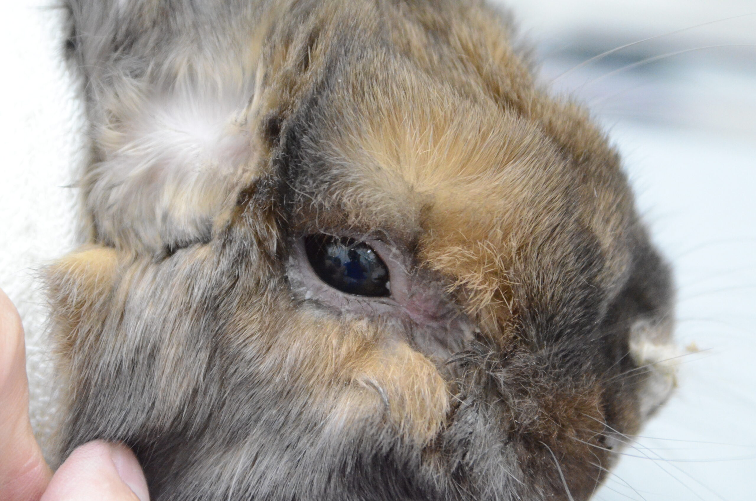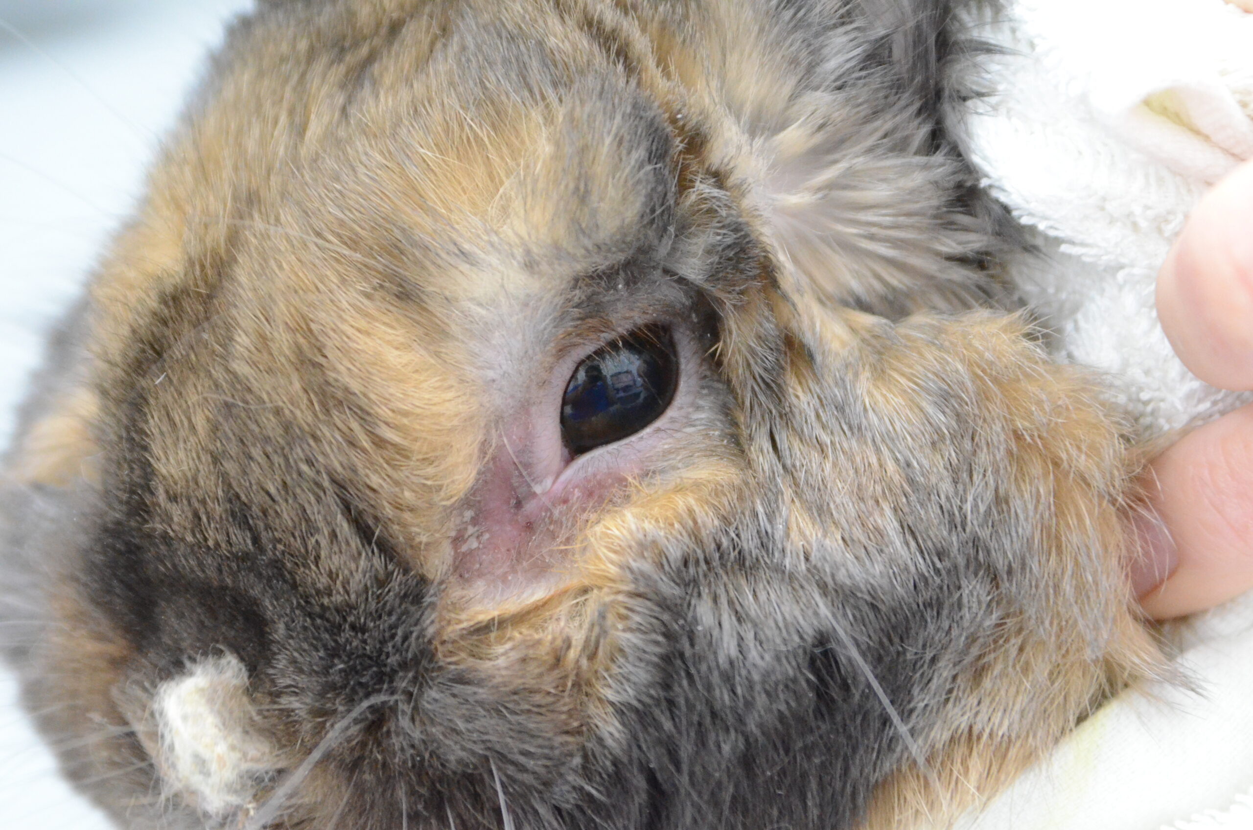 ウサギの鼻涙管閉塞は、鼻涙管という目の涙を鼻腔へ排出する管が何らかの原因で詰まることで起こります。原因としては、慢性的な炎症、歯根の過長や歯の変形による圧迫、外傷、感染症などが挙げられます。鼻涙管が閉塞すると、涙が正常に排出されず、目から涙があふれたり、目の周囲が濡れて炎症や二次感染を引き起こしやすくなります。また、涙のうが膨らむことで痛みや不快感を感じることもあります。